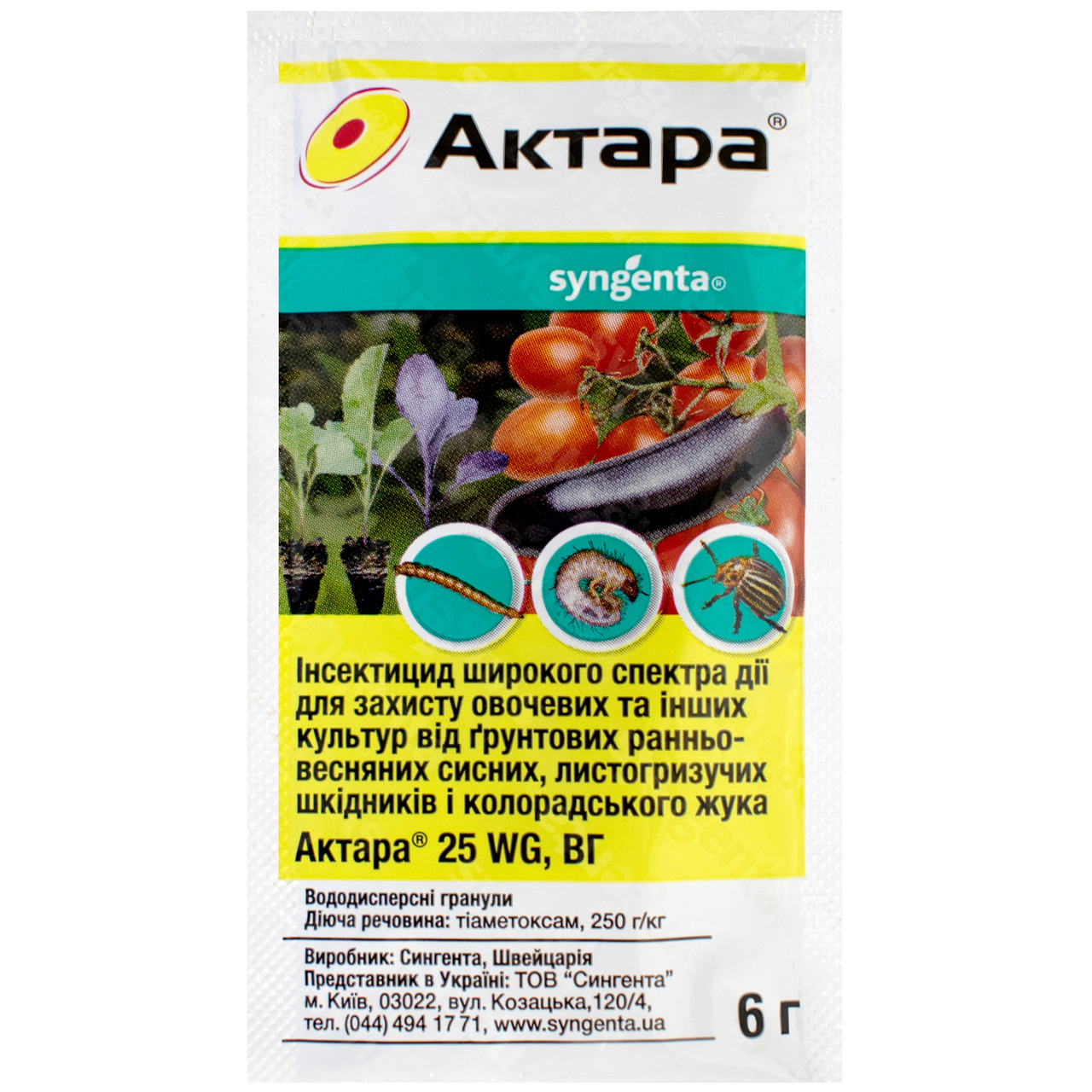 Актара® зареєстровано для обприскування рослин, а також для замочування розсади томатів, капусти, солодкого перцю і баклажанів, обробки бульб к …