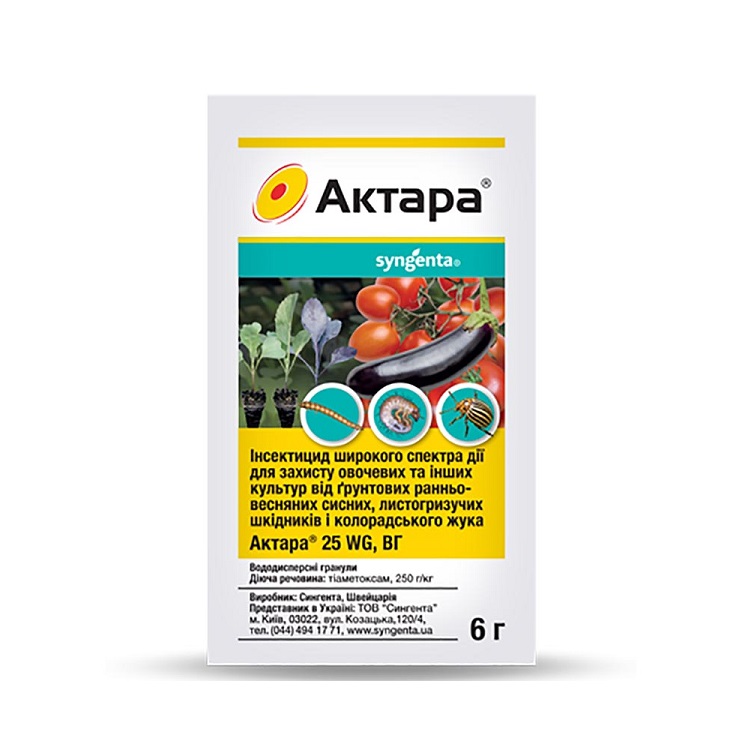 Актара – зареєстровано для обприскування рослин, а також для замочування розсади томатів, капусти, солодкого перцю, баклажанів, та обробки бульб картоплі перед …