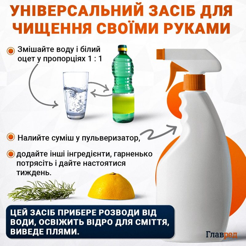 Вам знадобиться вода і оцет. Все необхідно змішати в пропорціях 3:1 (вода:оцет). Цей розчин найкраще помістити в пульверизатор і обробити ним …