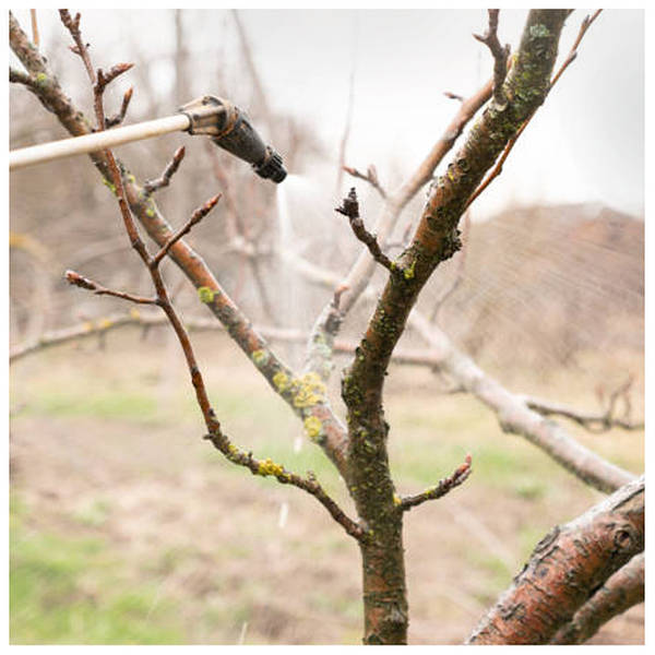 Для цього потрібно змішати 1% залізний або мідний купорос з 5% розчином сечовини, 3% бордоською рідиною та 500 г кабаміду на 10 літрів води. Обробляти дерева потрібно до настання заморозків, але після того як опаде листя, в сухий безвітряний день.