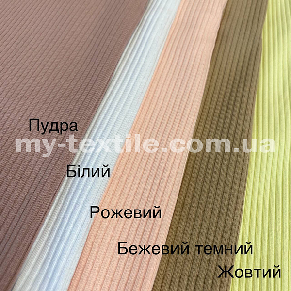 Трикотаж рубчик – це досить м'яке на дотик, еластичне, середньої щільності трикотажне полотно, що складається з поліестерових волокон та еластану. Приємна до тіла, м'яка міцна тканина.