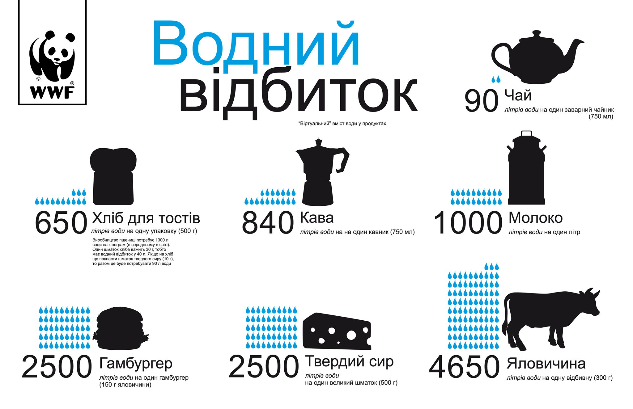Середньостатистичний Водний слід по світу становить 1240 м3 на людину на рік. Водний слід країни розраховується за кількістю води, використаної …