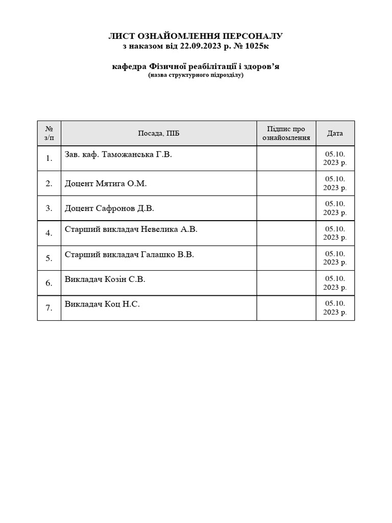 Як правильно написати з наказом “ознайомлені”?